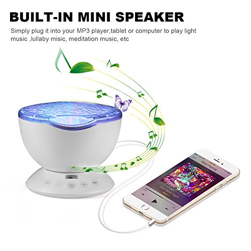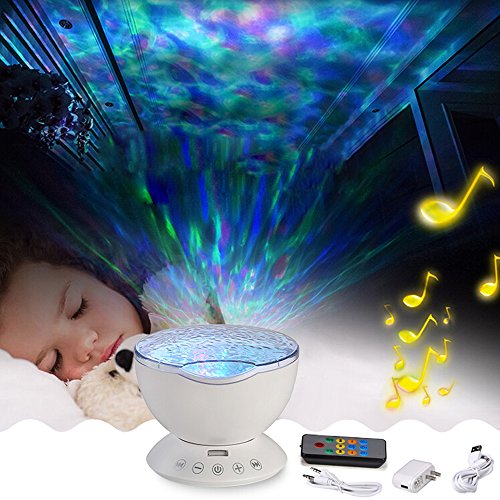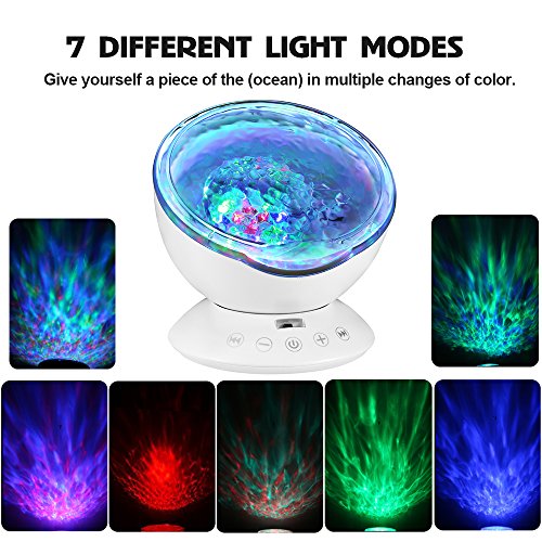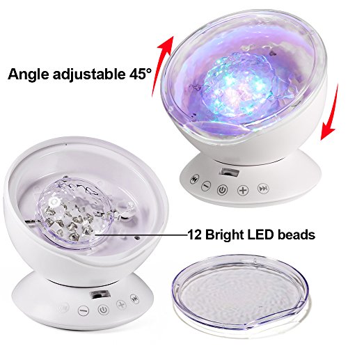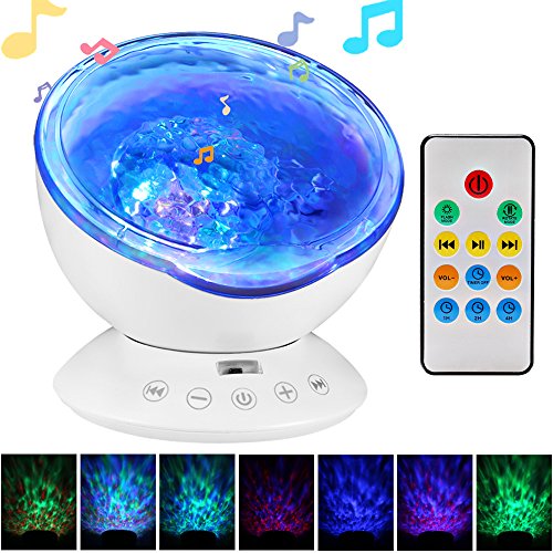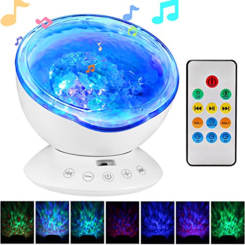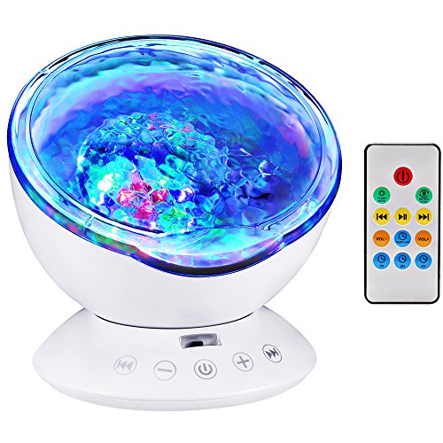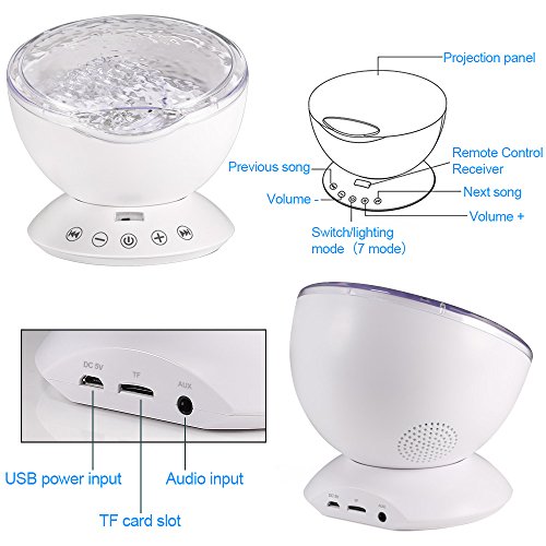 Studio : TOTOBAY Direct Publisher : TOTOBAY Direct Product Description Have no time for a seaside trip? Now you can see it at home or in your office simply by turning the ocean wave night light on. And the mini speaker let you enjoy the tranquility after a day¡?s work. 7 Colorful Light Mode : 1. red, blue, green three lights all light( romantic atmosphere) 2. red blue, red green, blue green two color light quick flash(colorful) 3. red blue light lighting(purple atmosphere) 4. blue light lighting( ocean) 5. green light lighting(aurora borealis ) 6. red blue,green cycled lighting(magic zone) 7. redbluegreen cycle quick flash(disco effect) Features: ¡n 7 colorful light mode rotate mode ¡n 12 bright led beads ¡n Smart touch sensor key ¡n Remote control ¡n Angle adjustable ¡n Built-in music ¡n TF card slot ¡n Audio input ¡n 1H/2H/4H auto off timer Specification: Rated volt/current: DC5V/1A Rated power: 2W Speaker: 4|¸/3W Respond frequency: 160Hz-20KHz Motor specification: 5V/13 circle Product material: ABS/PC/Metal/Electronic components Notes 1.Please do not allow children under 6 years old to use it alone. 2.Please do not place the product on non-flat surface to prevent fall broken. 3.This product is non-waterproof, prohibited storage or use in the place of humid or high temperature. Packaging list: 1*Ocean wave night light 1*Wall Adapter 1*audio cable 1*matched USB cable 1*remote control(batteries not included) 1*manual