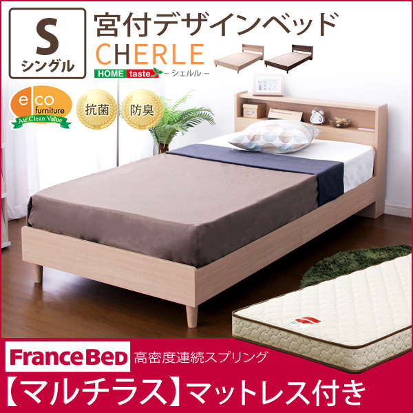 宮付きデザインベッド【シェルル-CHERLE-(シングル)】(マルチラススーパースプリングマットレス付き)