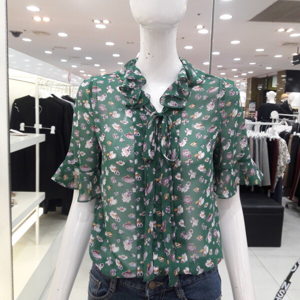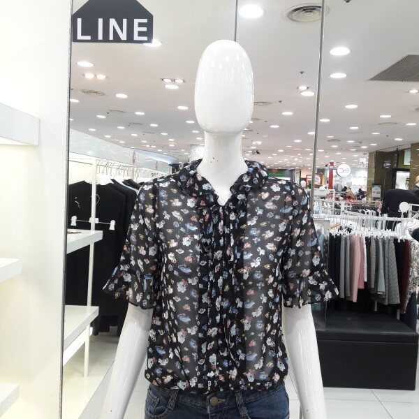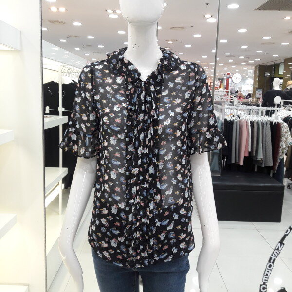 18년 신상 가격인하된 플라워 블라우스입니다 하늘하늘한 가벼운 소재로 전체 플라원패턴과 잘 어울리는 여성스런 디자인입니다 탈부착가능한 리본넥끈이 사랑스러운 스타일입니다
