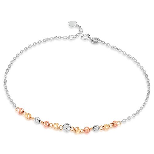 -. Title : 14K Tri-Color Gold Rose Yellow And White Large Beads Anchor Chain Anklet (9')