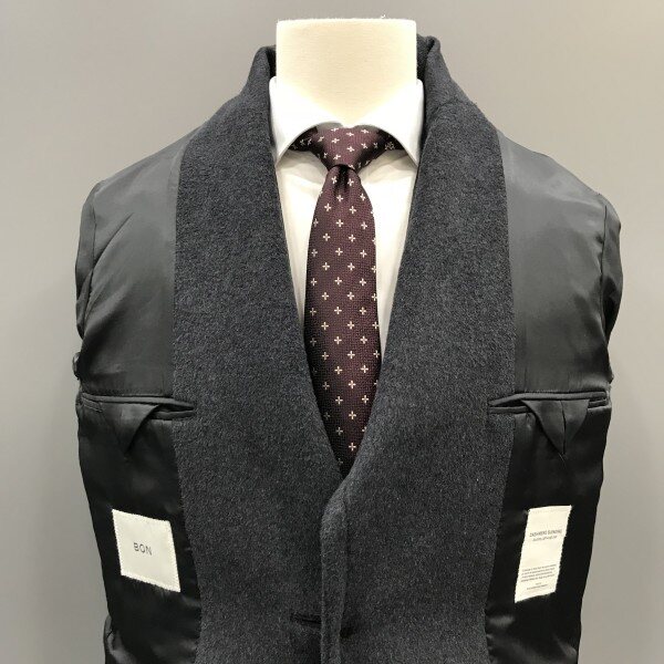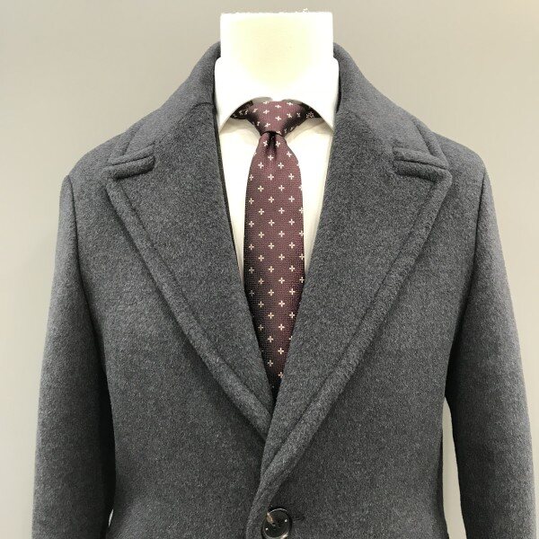 테일러드 칼라로 클래식함을 더하고 다크그레이 톤의 색감으로 마무리 하였습니다.