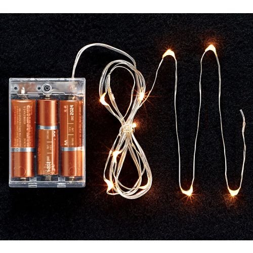 - Mini LED clear battery operated lights with 10 warm white bulbs on a bendable wire