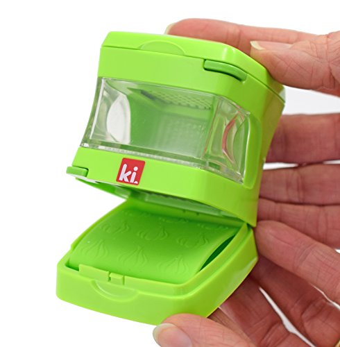 Kitchen Innovations Garlic-A-Peel Garlic Press, Crusher, Mincer, and Storage Container - Includes Silicone Garlic Peeler - Easy to Clean - Stainless Steel Blades – Green