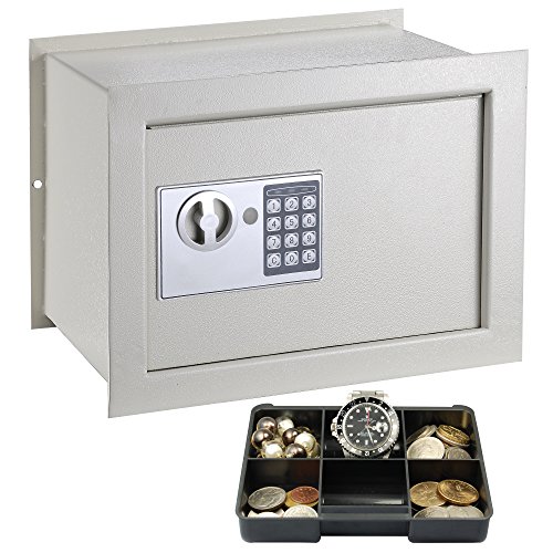 -. Binding : Kitchen -. Brand : Yescom -. Color : White -. Feature : Simple & Compact Design for Cash, Gun & Jewelry / Open with secret PIN code or included keys / LED lights and buzzers feedback for each operation and power status / Small tray for collecting small valuables conveniently(Free Gift) / Even a painting, sculpture or book-shelve can perfectly hide the safe from view -. Label : Yescom -. Manufacturer : Yescom -. MPN : 06SAF017-WL2DK-07 -. NumberOfItems : 1 -. PackageQuantity : 1 -. PartNumber : 06SAF017-WL2DK-07 -. ProductGroup : Home -. ProductTypeName : HOME -. Publisher : Yescom -. Studio : Yescom -. Title : Yescom In-Wall Inground Electronic Flat Safe Box Digital Keypad Lock Cabinet Home Security Jewel Gun Cash 11"x15"x10"