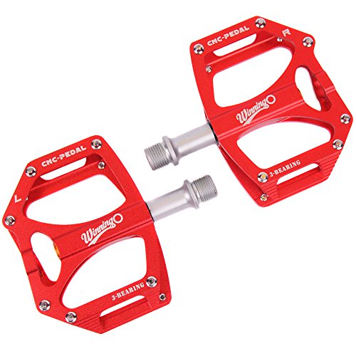 Winningo Mountain Bike/Bicycle Pedals - 9/16" MTB Cycling Flat Pedals - Aluminum Alloy Platform 3 Sealed Bearings Axle Pedals
