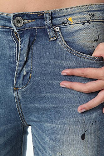 -. Binding : Apparel -. Brand : Q2 -. Department : womens -. Feature : High quality skinny jeans in cotton stretch denim with paint splash. Zip fly with button fastening and classic five pocket styling. Natural fading with distressed and patchwork detail. / 98% Cotton 2% Elasthanne / hand wash / do not bleach, iron on wrong side / low temperature ironing -. Model : 4050 -. ProductGroup : Apparel -. ProductTypeName : PANTS -. Title : Q2 Women's High quality skinny jeans with paint splash