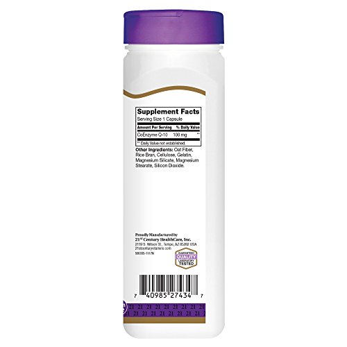 Studio : 21st Century Publisher : 21st Century Binding : Health and Beauty Product Description 21st Century COQ-10 provides antioxidant protection and cardiovascular support. Aging and poor diet may result in inadequate levels of COQ-10 in the body. CO Q-10 is essential for the health of all body organs. Gluten free. No added sugar, salt, yeast, preservatives, artificial flavors or colors. 21st Century vitamins and supplements are manufactured in a CGMP facility under the strictest standards for product quality, including potency and purity. 21st Century prides itself on providing you with a great product at the best value. This statement has not been evaluated by the food and drug administration. This product is not intended to diagnose, treat, cure or prevent any disease. 0
