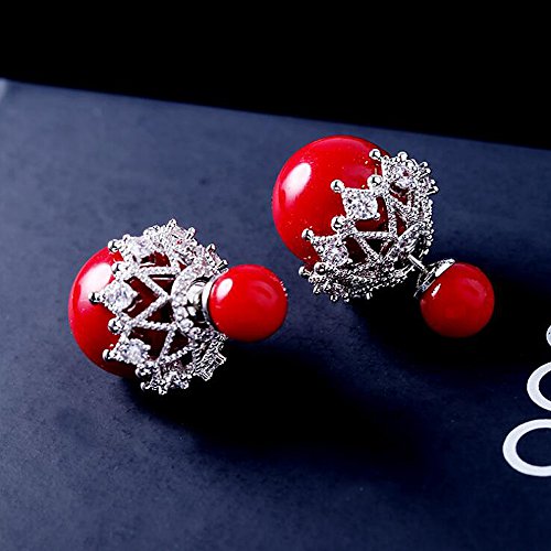 A&C Princess Snowflake Shaped 925 Sterling Silver Dangle Earring Jewelry for Women, Fashion Stud Earrings for Girl. (Red)