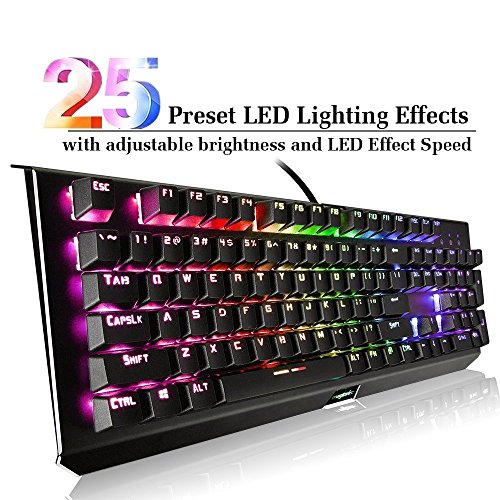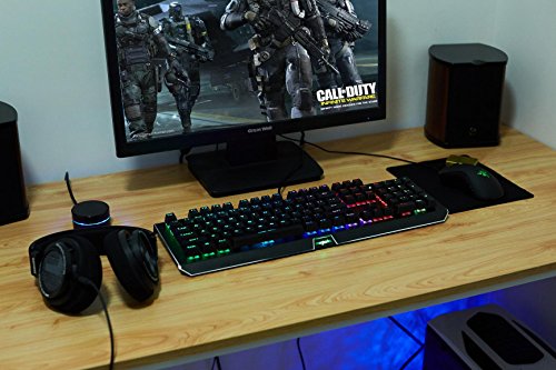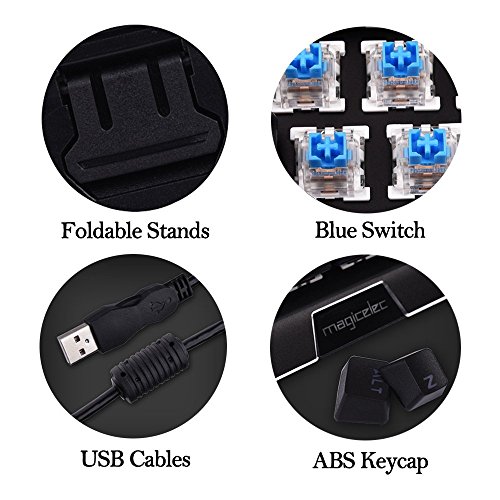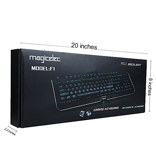 -. Feature : Faster Gaming Responsiveness - Experience true gaming precision with a mechanical keyboard that offers tactile responsiveness, faster response times while moving and shooting, and advanced click accuracy and macro efficiency. / Advanced Pro Gamer Keys - The Magicelec backlit gaming keyboard supports full anti-ghosting and N-key rollover technology. It also offers molded curved keycaps for better control, improved base stability, and comfortable wrist angles. / High-Intensity Game Play - Love shooters, action RPGs, a MOBA or MMO games? Shoot, jump and PvP your way to glory with keystroke durability that lasts for 50 million clicks. No one, NPC or player, will stand in your way! / Adjustable RGB Backlit Keys - Easily adjust the brightness and color settings of your keyboard to set the mood, ease eye tension, or just match the color of your tower. Our backlight keyboards offer a beautiful visual even for long night gaming. / Peripheral Support - Along with an ergonomic design for longer gaming sessions, and fast-twitch responsiveness, our mechanical keyboard offers customizable functions clean.