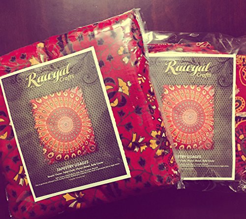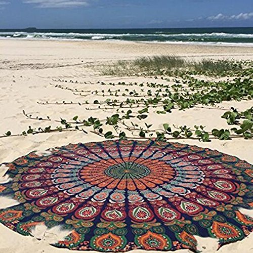 RawyalCrafts- Red Indian Feather Mandala Round Roundie Beach Throw Tapestry Hippy Boho Gypsy Cotton Tablecloth Beach Towel