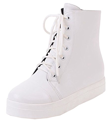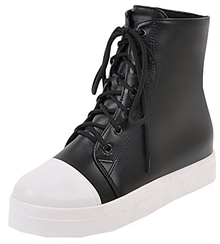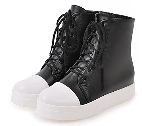 Binding : Apparel Product Description This pair of shoes is for women, girls, juniors and young ladies. You will look stylish and fashionable when wearing them. The heels measure 2.4 inches. You will feel comfy in their low heels. So you will not feel too tired when walking with them. This pair of shoes features lace up closure and ankle high. You will look stylish in their round toe. The faux fur lining will warm you all winter. The sole is made of good rubber. You will feel comfortable in their soft bottom. They are of high quality and durable. 0