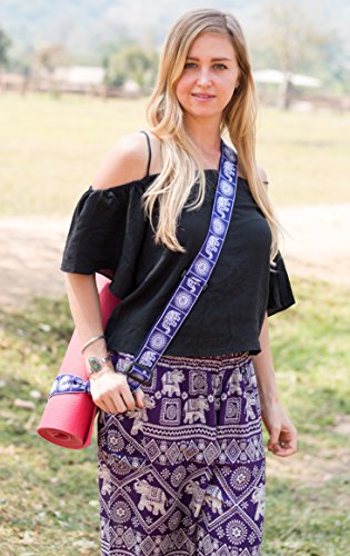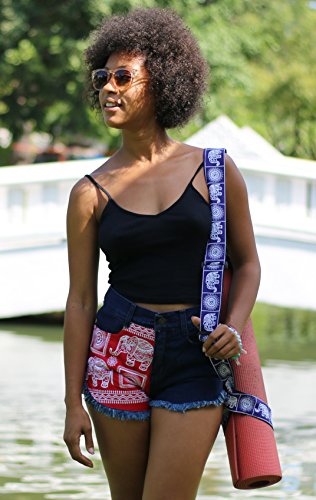Elephant Yoga Mat Strap Sling Adjustable Handmade With Durable Cotton - Elephant Print - (4 Colors to Choose From) - 40" Yoga Mat Carrier- Fits All Standard Yoga Mats