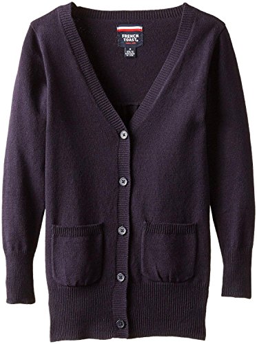 Girl's cardigan with 2 patch pockets. 1x1 rib at collar, cuffs and hem. Gathers at the center back. 12 gauge acrylic blend. Brand : French Toast MPN(PartNumber) : C9226 EAN : 0884503312651 Product Dimensions(LxWxH) :