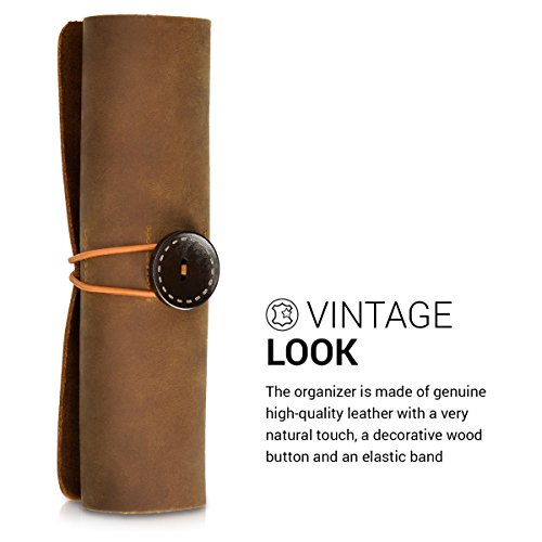 ORGANIZATION IS EVERYTHING: With the kalibri leather case for winding you can keep and transport your cables, pencils and brushes, as well as your cosmetic brush in a simple and space-saving way.