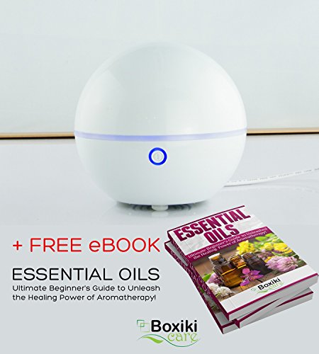 Boxiki Care Travel USB Humidifier | Mini Size Essential Oil Aroma Diffuser and Personal Cool Mist Ultrasonic Humidifier by LED Light, Waterless Auto Shut-Off