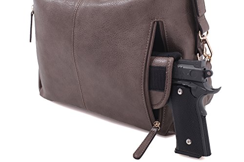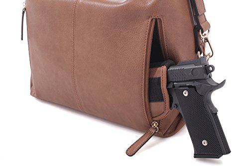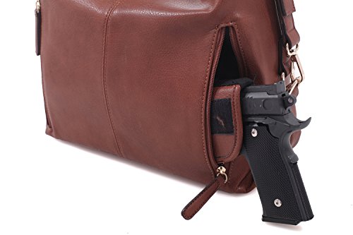 -. Brand : Emperiaoutfitters -. Department : womens -. Feature : The stylish Cindy concealed carry hobo is highly desirable because it can be carried it as a traditional handbag or adjusted to become a hands free backpack by adjusting the top handles. / This classy bag is crafted using quality faux leather and features decorative brass accents. The spacious main zippered interior features a zippered pocket and 2 open slip pockets for your cell phone and other necessities. / The concealed carry compartment is located on the back and can be accessed from the right or left side making it ambidextrous. / ealment pocket measures 11" W x 7.5" H/Removable holster included / Purse Dimensions: 15" L x 6" W x 14" H **This is a large purse! -. ProductGroup : Shoes -. ProductTypeName : HANDBAG -. Size : Extra Large -. Title : Concealed Carry Gun Purse - Cindy Hobo Backpack by Emperia Outfitters