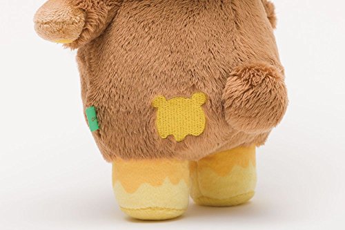 Kiroitori and Korilakkuma carry adorable bear shaped bags across their body. On Kiroitori and Rilakkuma's ear is a cute bumblebee patch. Their brown bear costume has plush dark brown fur, a white mouth, cute round eys and nose, and fluffy white hair at the chest.