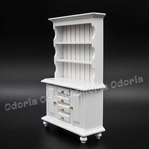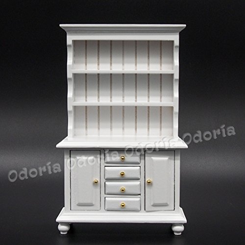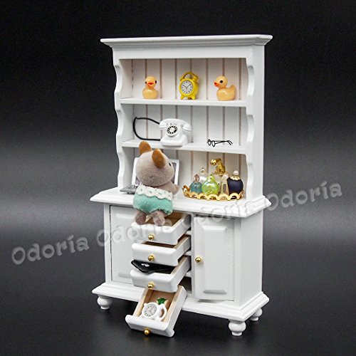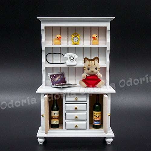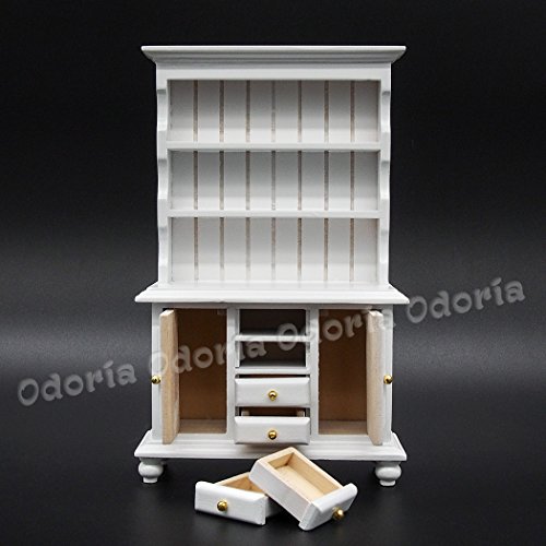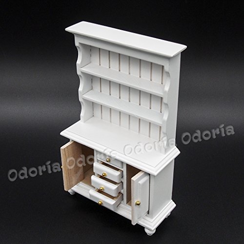-. Title : Odoria 1:12 Miniature White Kitchen Cabinet Cupboards with Working Drawer Dollhouse Furniture Accessories
