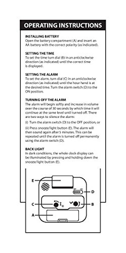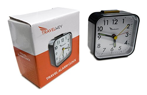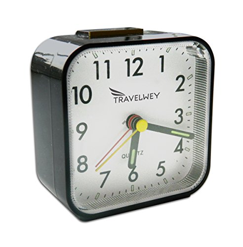 The Best Alarm Clock For Your Needs Travelwey has designed the simplest travel/bedside alarm clock for your needs. The sweep second hand is completely silent, a plus for light sleepers. The setting of the time and alarm requires just a simple turn of a dial on the backside. The alarm is clear, audible and ascending so you will not fail to wake up. The snooze facility allows the alarm to go off every 5 minutes until switched off. For night-time use a simple press of the top button will trigger the light giving a clear view of the clock-face. Additionally, if the clock face has been exposed to bright sunlight throughout the day the luminous hands and digits will glow for up to 4 hours. Finally the clock is encased in a very hard, plastic casing able to withstand many drops, ideal if you travel a lot.