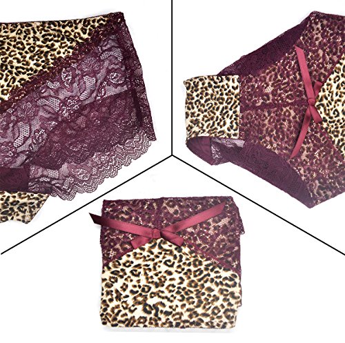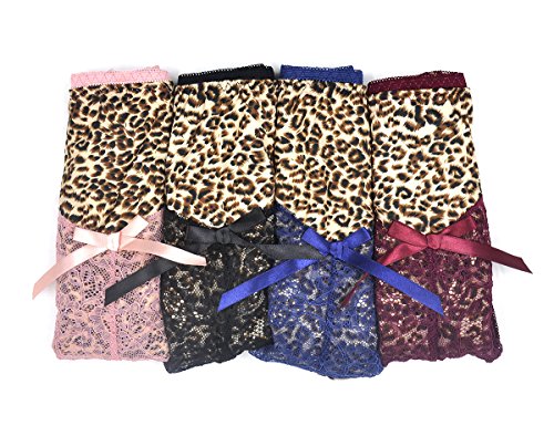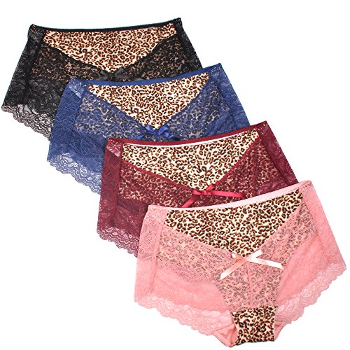 Woman Hispter Lace Sexy Large Size Briefs Underwear Pack Of 4 (one size, Leopard)