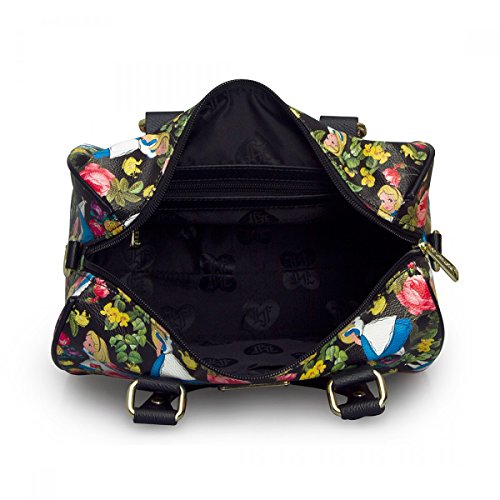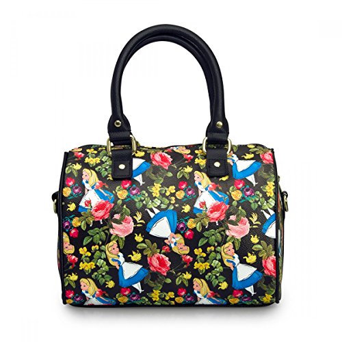 This great looking handbag features Alice from Alice and Wonderland film. This awesome handbag will definitely catch everyones eye! Be the first one to have it! This faux leather purse Includes Adjustable straps and measures W: 10" X H: 9" X D: 5"Feature