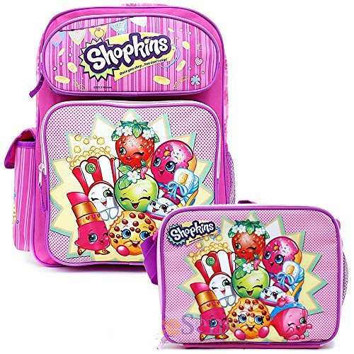 -. Title : Shopkins Large 16" Inches Backpack with Matching Lunch Bag Set - Licensed Girls