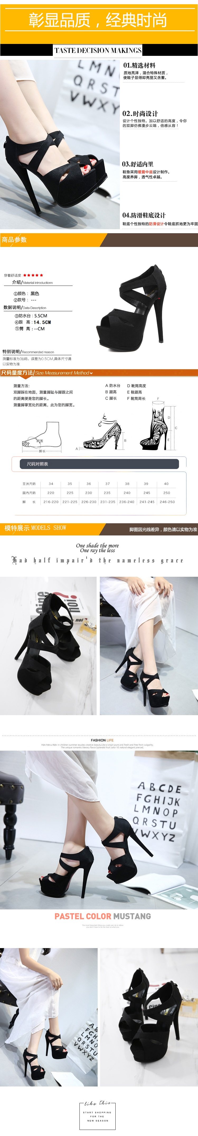 凉鞋女性感夜店恨天高细跟防水台 14cm/12cm走秀高跟凉鞋
