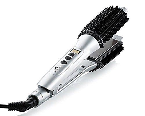 FLAT IRON HAIR STRAIGHTNER: To access the flat iron hair straightener, all you have to do is unlock the brush to open. The hair straightening iron features tourmaline plates that offer incredible energy efficiency. The Flat Iron Plates are floating and ionic. This means, no worries about burning your hair or having a sudden pull on your hair. With the hot round brush & styling flat iron, or a combination of the two, you can well-and-truly express your personality through your hairstyle.