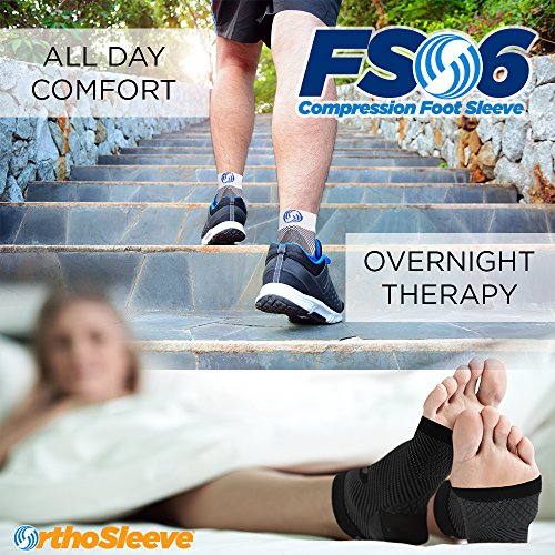 -. Feature : ULTIMATE PROTECTION-The FS6 provides immediate pain relief for Plantar Fasciitis, heel pain and arch pain by continuously stretching the Plantar Fascia to avoid further damage & prevent a reoccurrence of Plantar Fasciitis. / DESIGNED TO FIT-FS6 is designed specifically to fit your foot shape. It has six zones of graduated compression to promote circulation, reduce impact vibration & boost recovery. The FS6 helps provide the same support during workout or while you rest. / QUALITY BREATHEABLE/ANTI-ODOR-FS6 is made of quality, moisture-wicking fabric which allows the sleeve to breath during movement. Our braces help eliminate sweat buildup under the sock to provide a cool, fresh workout. / COMFORT & SUPPORT-FS6's light-weight design provides the support tendons & joints need to stay healthy, but offers a more wearable option. Unlike bulky splints, neoprene or copper braces & Velcro, FS6 guarantees relief in a moveable, breathable fabric. / 100% MONEY BACK GUARANTEE-OrthoSleeve is committed to our product & guarantees results or we will offer your money back. With proper care, hand washing and air dry, Orthosleeve products are made to provide support for up to six months.