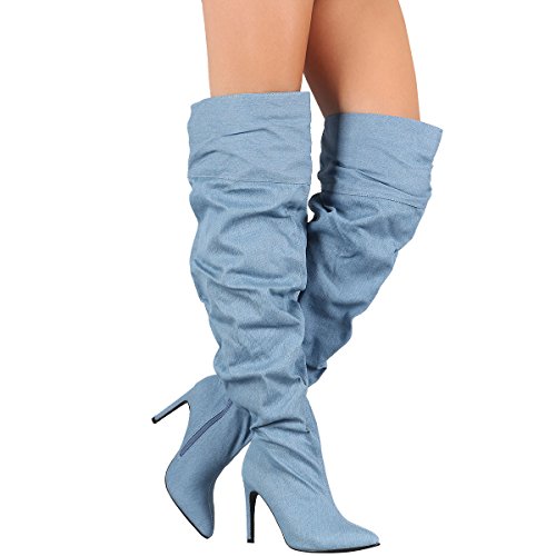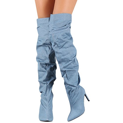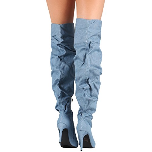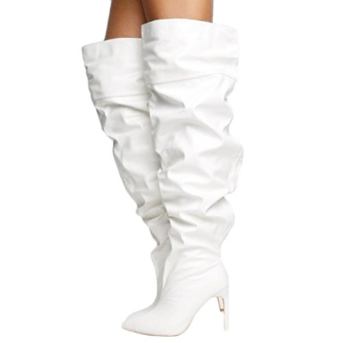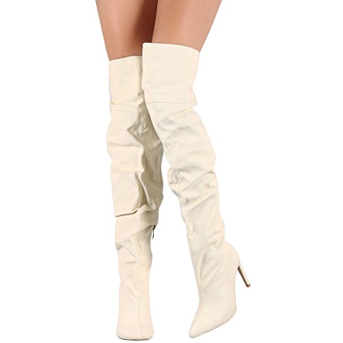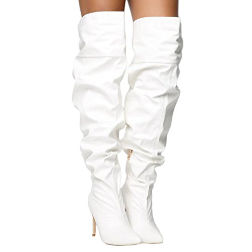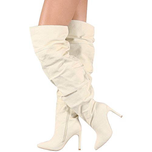 Binding : Apparel Product Description Bring your tough gal looks to any event of all seasons! Perfect for the sunshine days or the nights with your girls! This thigh high is completely versatile! These stunning over-the-knee boots feature a pointy toe silhouette, slouchy shaft, and wrapped stiletto heel. Finished with a cushioned insole, soft lining, and partial side zipper closure. 0