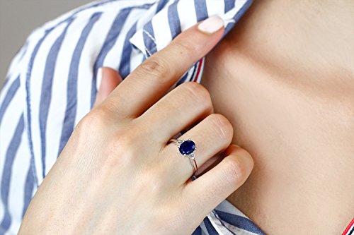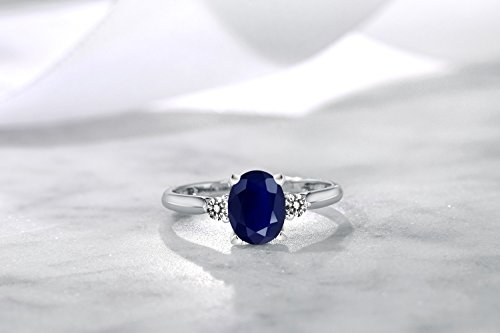 -. Title : 14K White Gold 1.92 Ct Blue Sapphire White Diamond 3-Stone Women's Ring (Available in size 5, 6, 7, 8, 9)