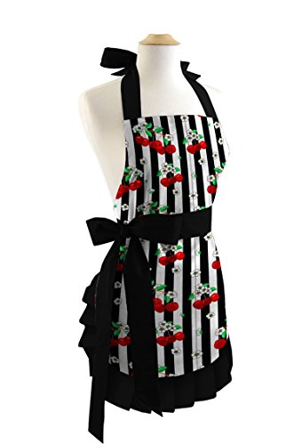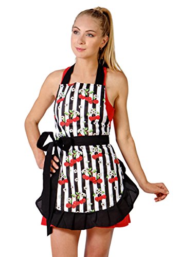 Sexy Cooking Apron for Women with Stylish Sexy and Vintage Look. Great for Christmas Gift (Black Trim)