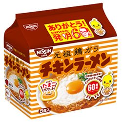 세계 최초의 인스턴트 라면「치킨 라면」의 5 식패밀리 팩.