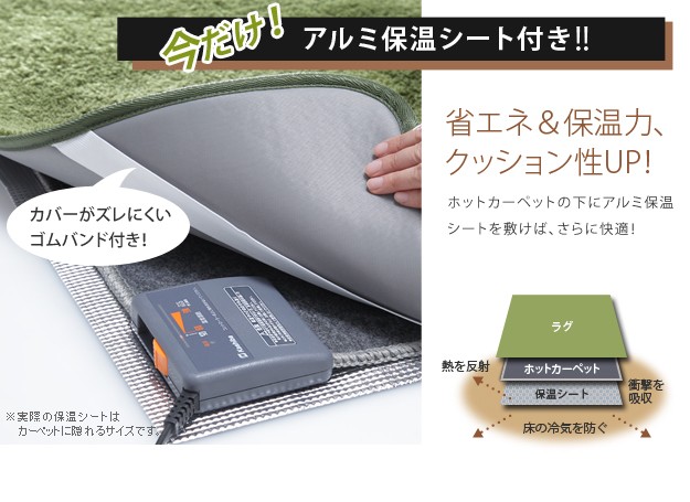 セット内容:ホットカーペット本体x1枚、カバーx1枚、アルミ保温シートx1枚