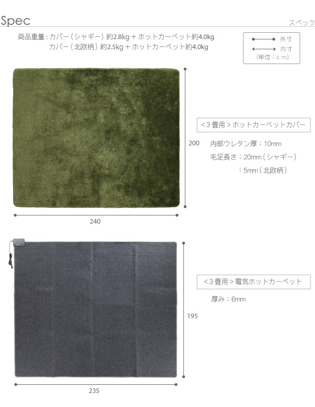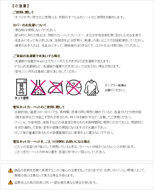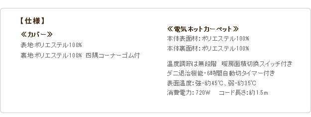 材質:ホットカーペット本体表面・裏面-ポリエステル100%、カバー表地・裏地-ポリエステル100%、内部-ウレタン
