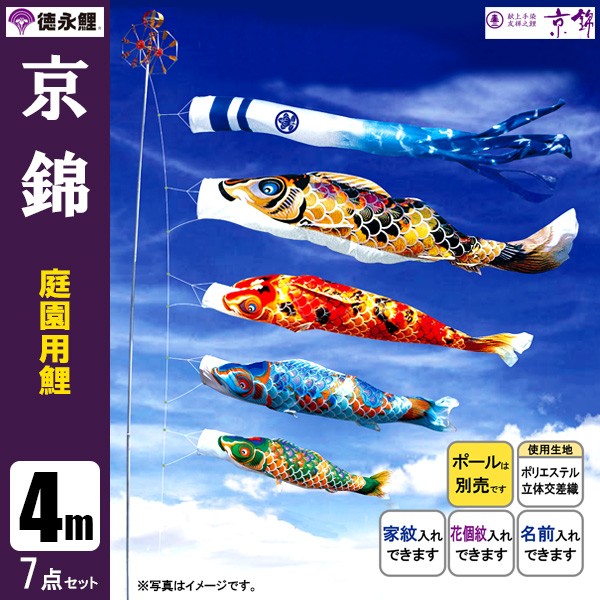 | 京錦 鯉 庭園用大型鯉のぼり 杭打込式ポール付セット | 1.5m鯉3匹 | 2m鯉3匹 | 3m鯉3匹 3m鯉4匹 3m鯉5匹 | 4m鯉3匹 4m鯉4匹 4m鯉5匹 |