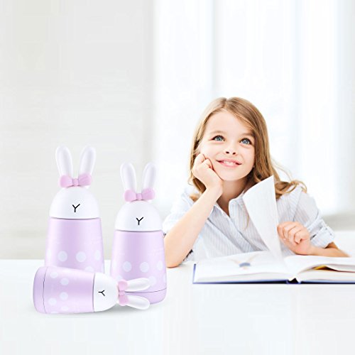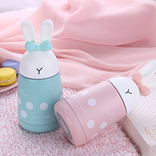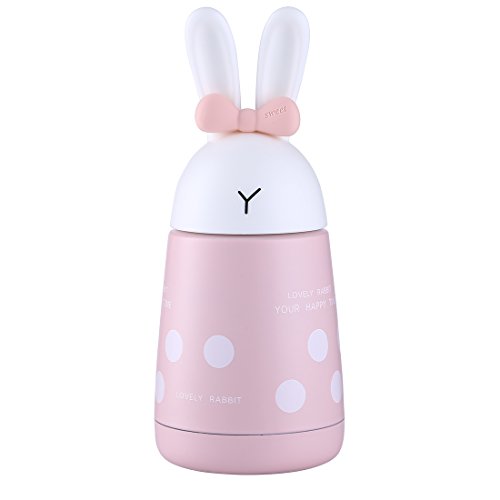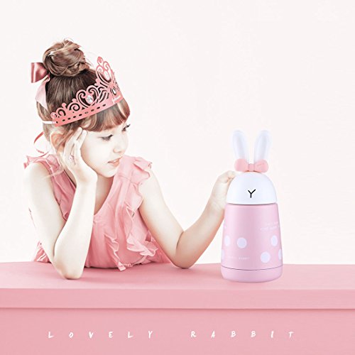 Polka Dot Water Bottle for Kids& Adults,Cute Rabbit Travel Mug, Mini Bunny Water Bottle, Thermos Bottle for Girls,Magic Bunny for Easter, 300ml/10.5oz New (Polka Dot Pink)