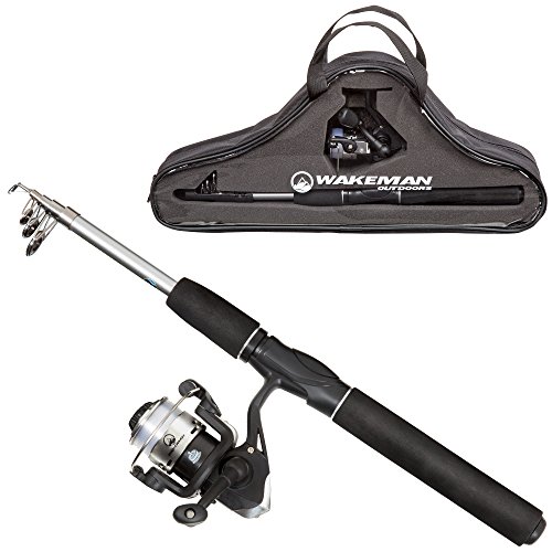 You have found the ultimate in lightweight portability and power with this ultra Series telescopic spinning combo from Wakeman. For the angler that wants compact and easy transport but doesn't want to sacrifice a full size rod for travel. The perfect lightweight gear for ponds, lakes and rivers that can be hard to reach. Reel has ball bearing drive for smooth action. Spool-adjustable drag, ambidextrous crank handle and forward/reverse reel switch offers the features you expect. The sturdy fiberglass rod offers the strength needed for Big fish when fully extended, but reduces down to only 17 inches to fit in your pack or behind the seat of your truck with ease. Comes with a full-zip foam-lined carry bag to protect your investment from the elements and damage.Feature