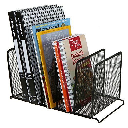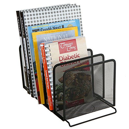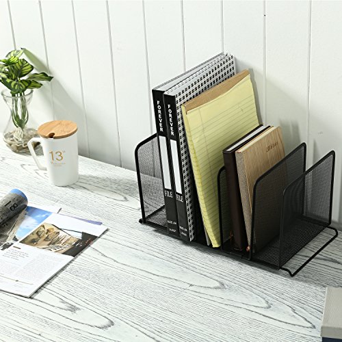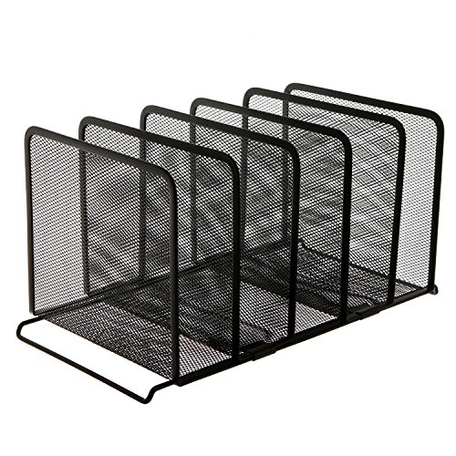 MyGift Mesh Metal 5 Slot Desktop Document Organizer, File Folder Stand, Black