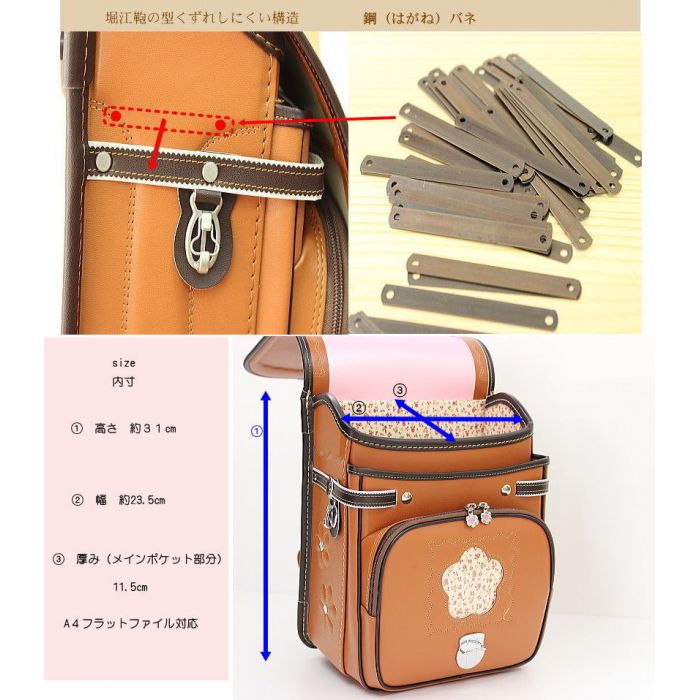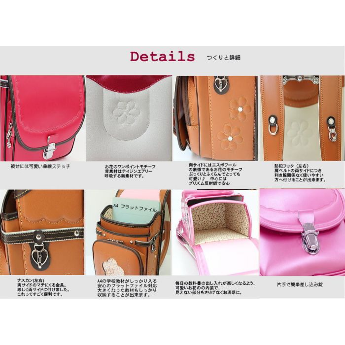 란도셀 소녀 2017 반 씌우다 A4플랫 파일 대응 일본제 수작업 인기 공방 ## 넘겨 귀여운 꽃의 란도셀 fleu