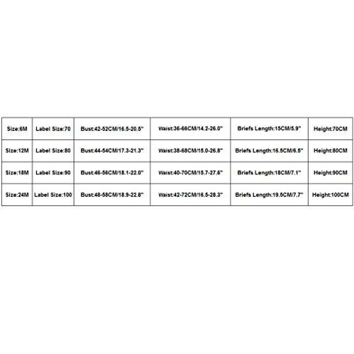 ?: Description: ?: ?: Gender: Girls ?: Sleeve Length:?Sleeveless ?: Pattern:?Stripe ?: Sleeve Style:?Sleeveless ?: Style:?Fashion ?: Material:?Polyester ?: Package include: 1PC Top and 1PC Briefs, 1PC Headband ?: Size Details: ?: ?: Size:6M===Label Size:70===Bust:42-52CM/16.5-20.5"===Waist:36-66CM/14.2-26.0"===Briefs Length:15CM/5.9"===Height:70CM ?: Size:12M==Label Size:80===Bust:44-54CM/17.3-21.3"===Waist:38-68CM/15.0-26.8"===Briefs Length:16.5CM/6.5"==Height:80CM ?: Size:18M==Label Size:90===Bust:46-56CM/18.1-22.0"===Waist:40-70CM/15.7-27.6"===Briefs Length:18CM/7.1"===Height:90CM ?: Size:24M==Label Size:100==Bust:48-58CM/18.9-22.8"===Waist:42-72CM/16.5-28.3"===Briefs Length:19.5CM/7.7"==Height:100CM 0