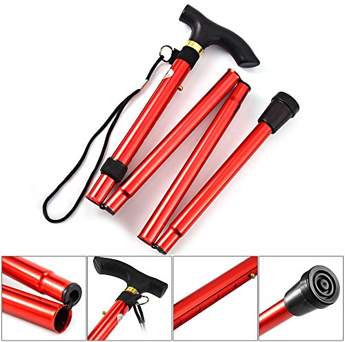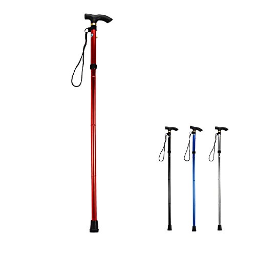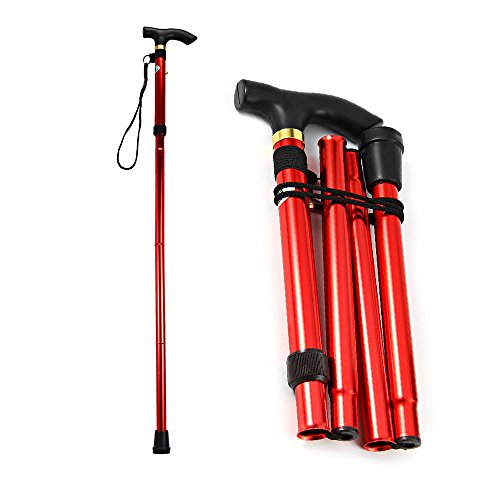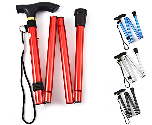 Studio : Heth Publisher : Heth Binding : Health and Beauty Product Description Features: - Height can be adjusted from 32 to 37 inches. - Four folding sections snap out automatically. - Comfortable contour grip with rubber tip, plastic handle with removable hand strap and brass collar. - Non-slip rubber base has increased wear-resistance. - Steady and rigid design, durable Aluminum construction. Material: Aluminum Alloy Color: Black, Silver, Blue, Red Best Use: Mountaineering, Hiking, Backpacking Package weight: 0.291 kg Package Dimension: 33 x 18 x 7 cm / 12.97 x 7.07 x 2.75 inches Package Contents: 1 x Folding Walking Stick Cane