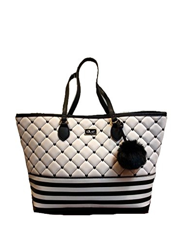 - Embroidered tiny hearts and is fully lined with a black & white stripe fabric, Approximately Measures: 11.5" high X 12" wide, Strap Drop Approximately 9", Depth Approximately: 6"