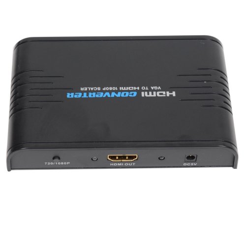 -. Feature : Upscales VGA to HDMI 720P or 1080P. Easy to use, plug and play / Supports VGA input: 640 x 480@60/75Hz, 800 x 600@60Hz, 1024 x 768@60Hz, 1280 x 720@60Hz, 1280 x 800@60Hz, 1280 x 960@60Hz, 1360 x 768@60Hz, 1440 x 900@60Hz, 1440 x 1050@60Hz, 1680 x 1050@60Hz, 1920 x 1080@60Hz. Recommended input resolution: 1024 x 768@60Hz / Support HDMI Output: 720/60HZ, 1080P/60HZ / Auto-store setting of output resolution / Specification: 1 x VGA input, 1 x 3.5mm audio input, 1 x HDMI 720p/60Hz or 1080p/60/Hz output and 1x DC 5V/1A power supply