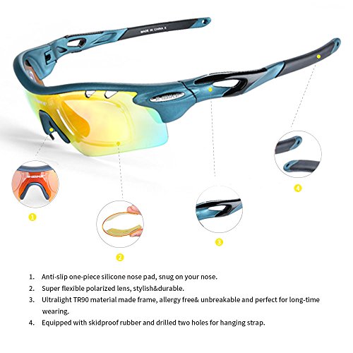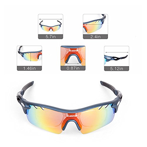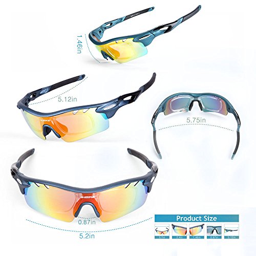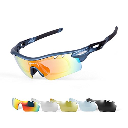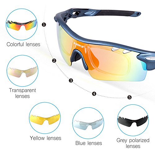 - 【FIVE INTERCHANGEABLE LENS】: Grey polarized lenses can eliminate astigmatism and reflected light. It's suitable for fishing & driving. Yellow lenses, you won't be troubled by dazzling light. It’s suitable for evening, early morning, mist as well as rain. Transparent lenses applicable for indoor sports. Blue lenses suitable for casual, beach and water sports wear. Colorful lenses common use in skiing & cycling