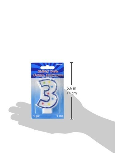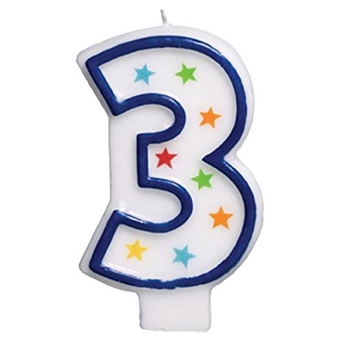 Star Studded Flat Molded Number 3 Celebration Candle, White , 3.5 Wax (Two-Pack)