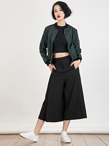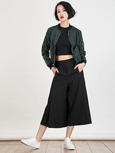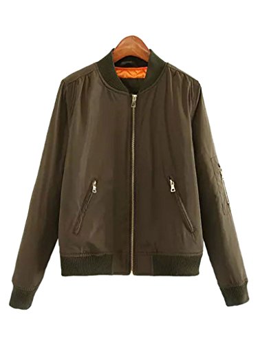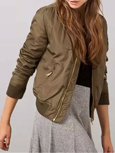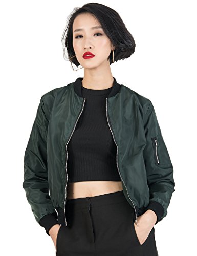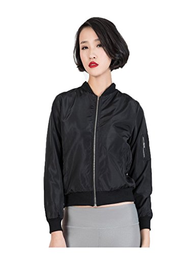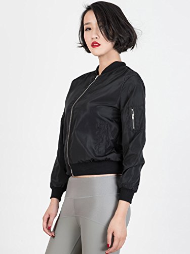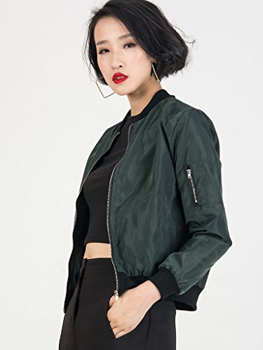 CR Women's Zipper Detail Long Sleeve Plain Bomber Jacket
