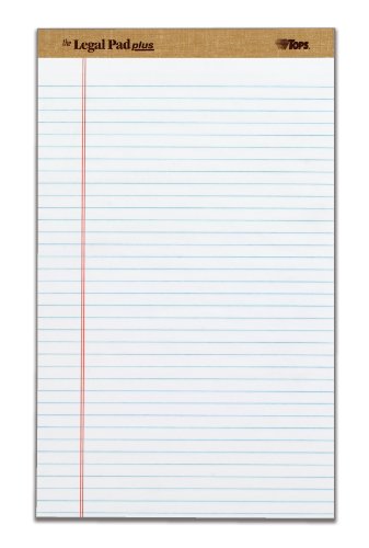 TOPS The Legal Pad Plus Legal Pad, 8-1/2 x 14 Inches, Perforated, White, Legal/Wide Rule, 50 Sheets per Pad, 12 Pads per Pack (71573)