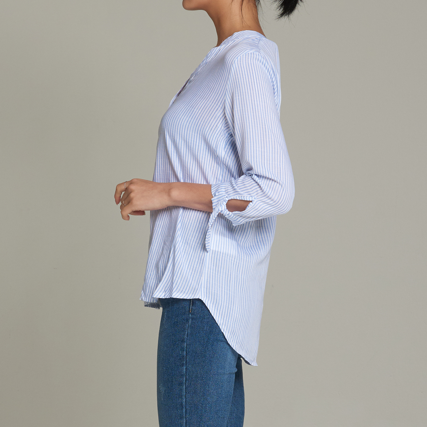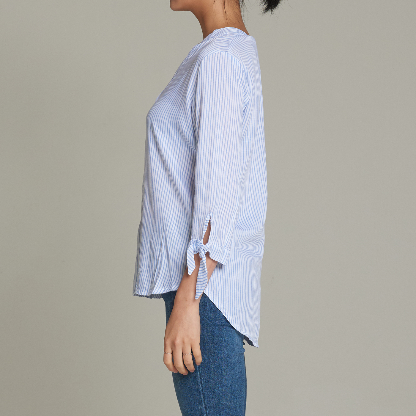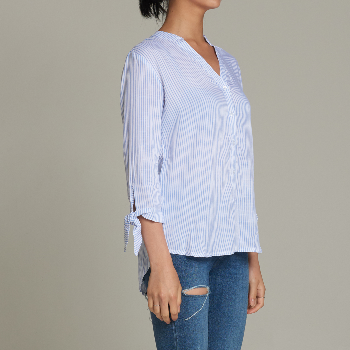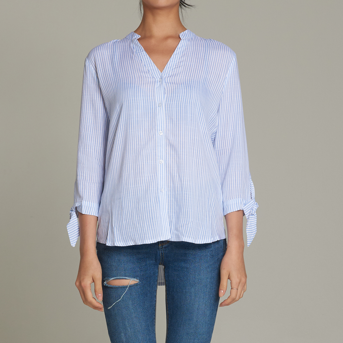 소매의 디테일이 귀엽고 V넥 라인이 시크한 스타일입니다.