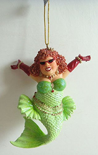 . Queen for the Day. Green Mermaid Ornament. Made from a hard resin. Approximately 5.2 inches tall (13cm). Includes original manufacturers box and packaging. Made by December Diamonds